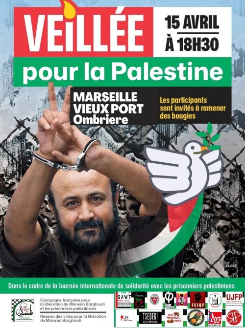 avec une bougie pour demander la libération de Marwan Barghouthi et de tous.tes les prisonniers.es politiques palestiniens ainsi que : Arrêt immédiat du génocide à Gaza et levée du siège (…)