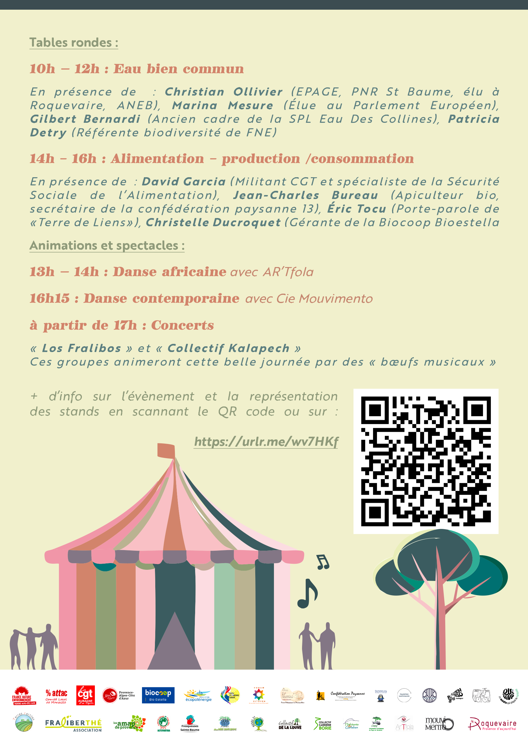Venez profiter des animations : les stands présentant les alternatives, un marché paysan, des concerts, des danses et de la restauration saine et responsable !