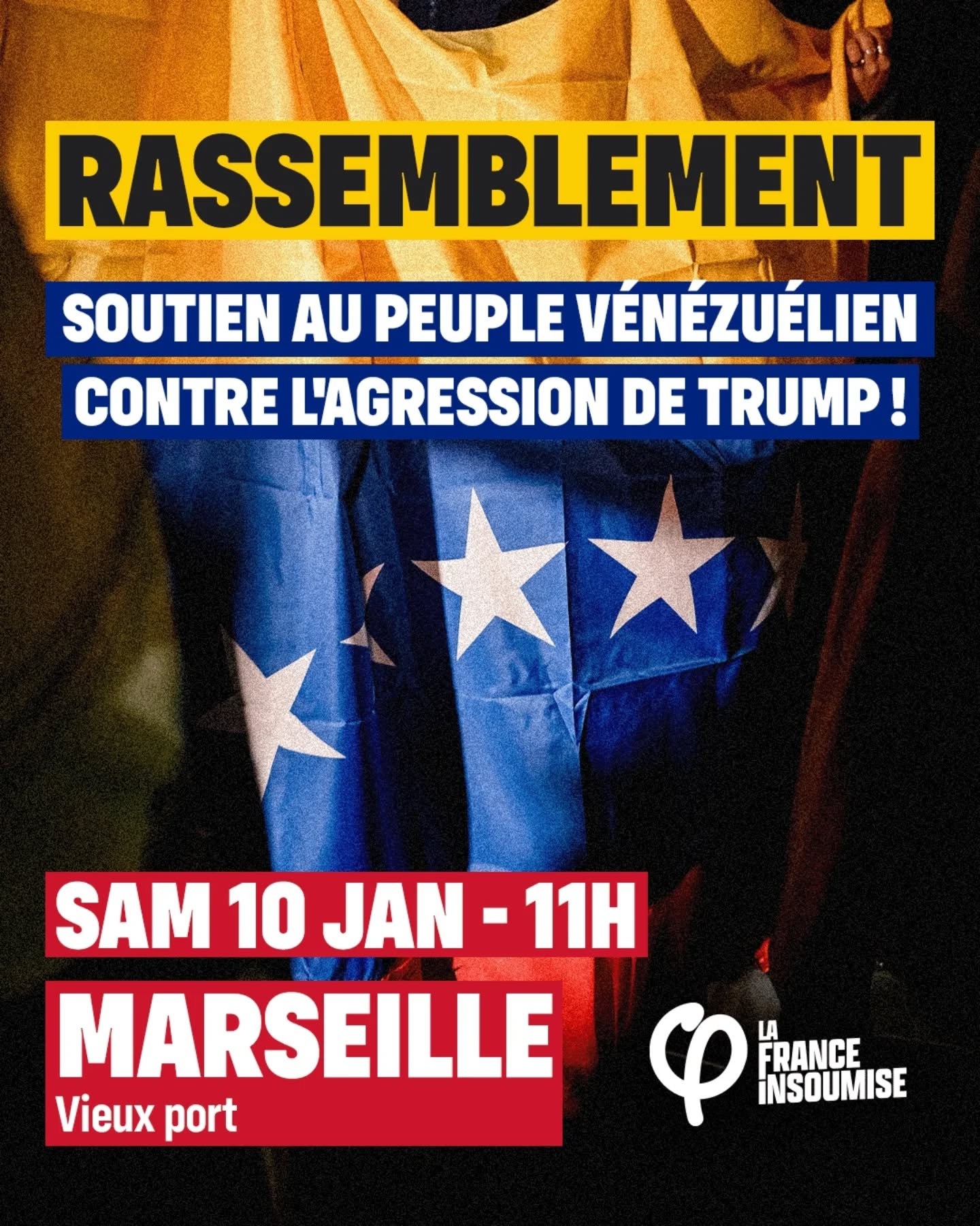 Rassemblements en solidarité avec le peuple vénézuélien ! Soutien au peuple vénézuélien contre l’agression de Trump ! Samedi 10 janvier, 11h Sous l’ombrière du Vieux-Port, Quai des Belges 13001 Marseille