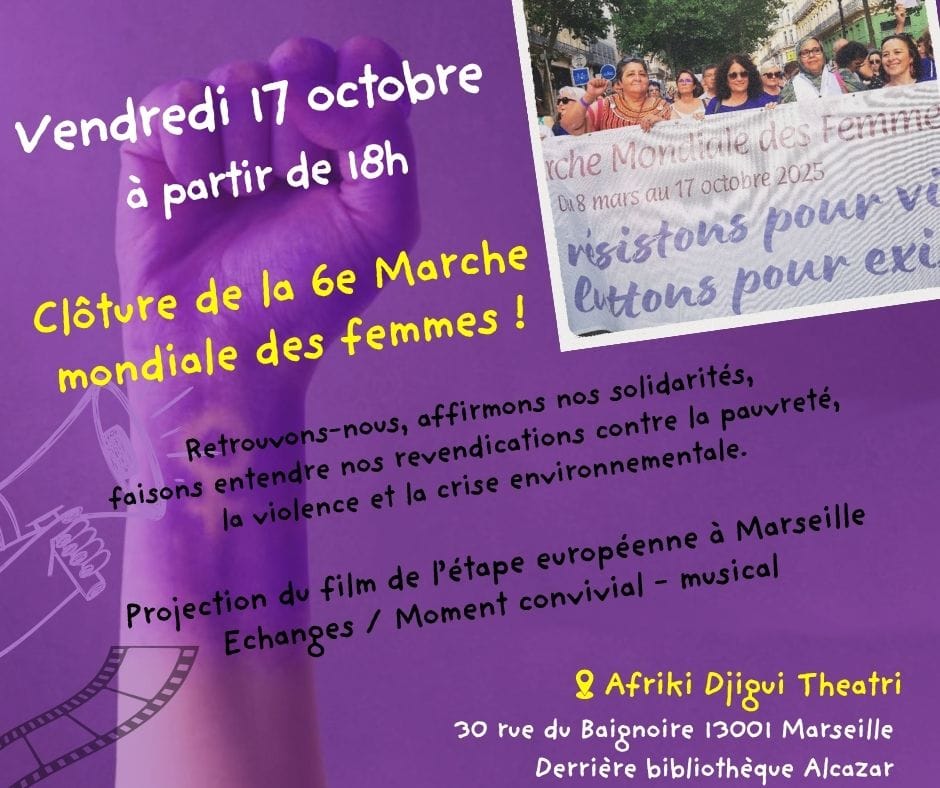Ce 17 octobre, à partir de 18 h, à l’Afriki Djigui Théatri, 30, rue du Baignoir, 13002 le collectif 13 Droits des Femmes organise une soirée de clôture.