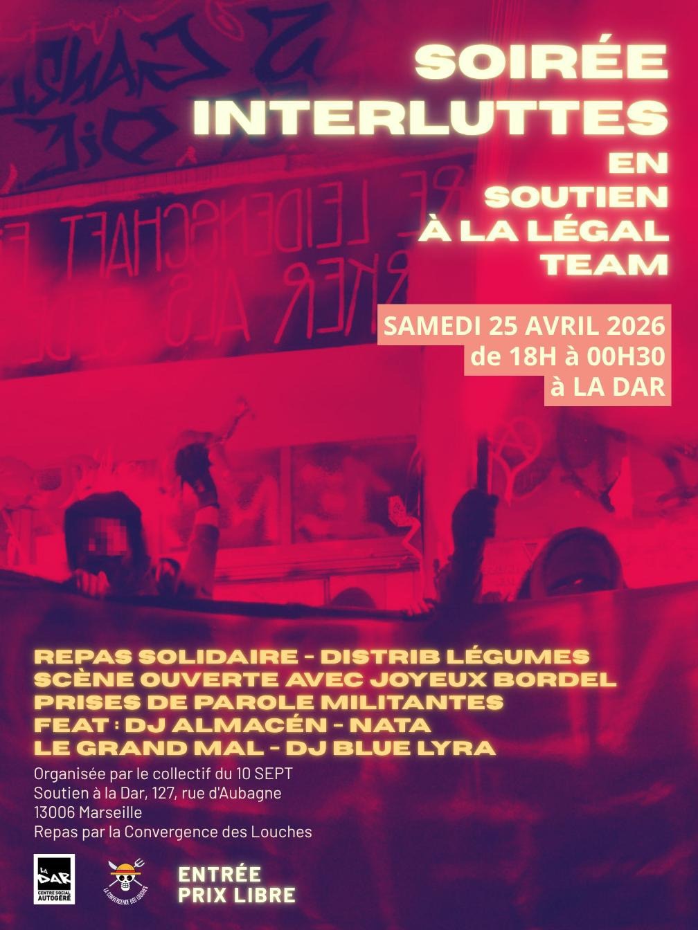 – à la DAR, 127 rue d’Aubagne 13006 Marseille
